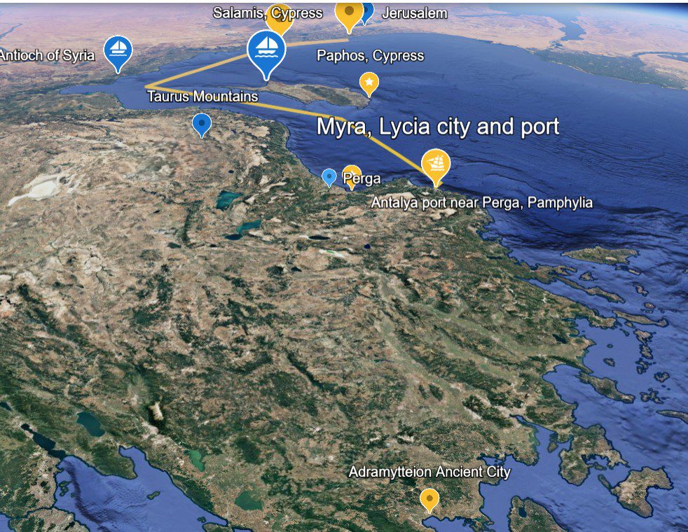 Julius gained passage on such a ship that sailed along the coast, first with a stop in nearby Sidon, with a terminus destination of Myra.
